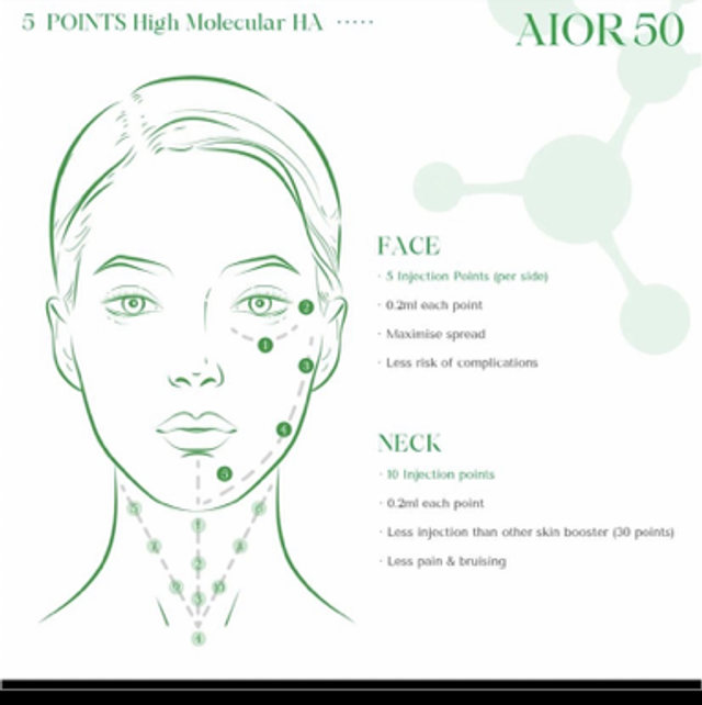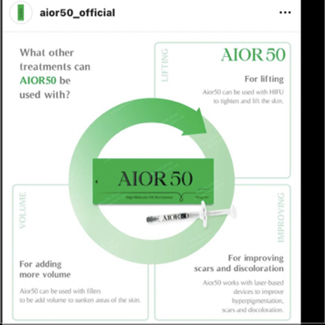 AIOR 50 is a type of skin booster product that is designed to rejuvenate and hydrate the skin. It is composed of a combination of hyaluronic acid, amino acids, vitamins, and minerals that work together to improve skin texture, tone, and elasticity.